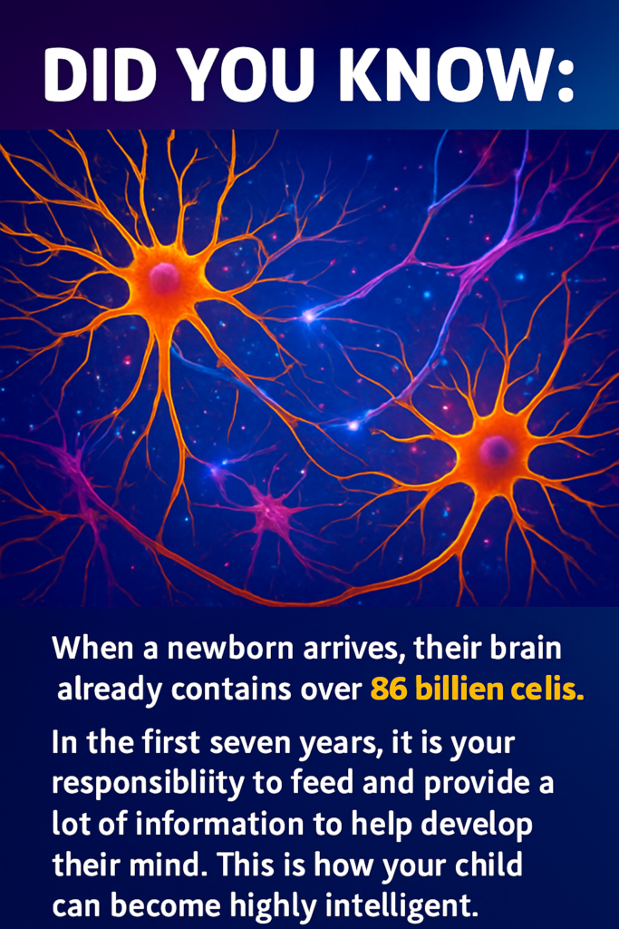 When a child is born, their brain contains more than 86 billion neurons. It is your responsibility during the first seven years to nourish the brain and feed it with rich information. This is how your child develops a high level of intelligence.